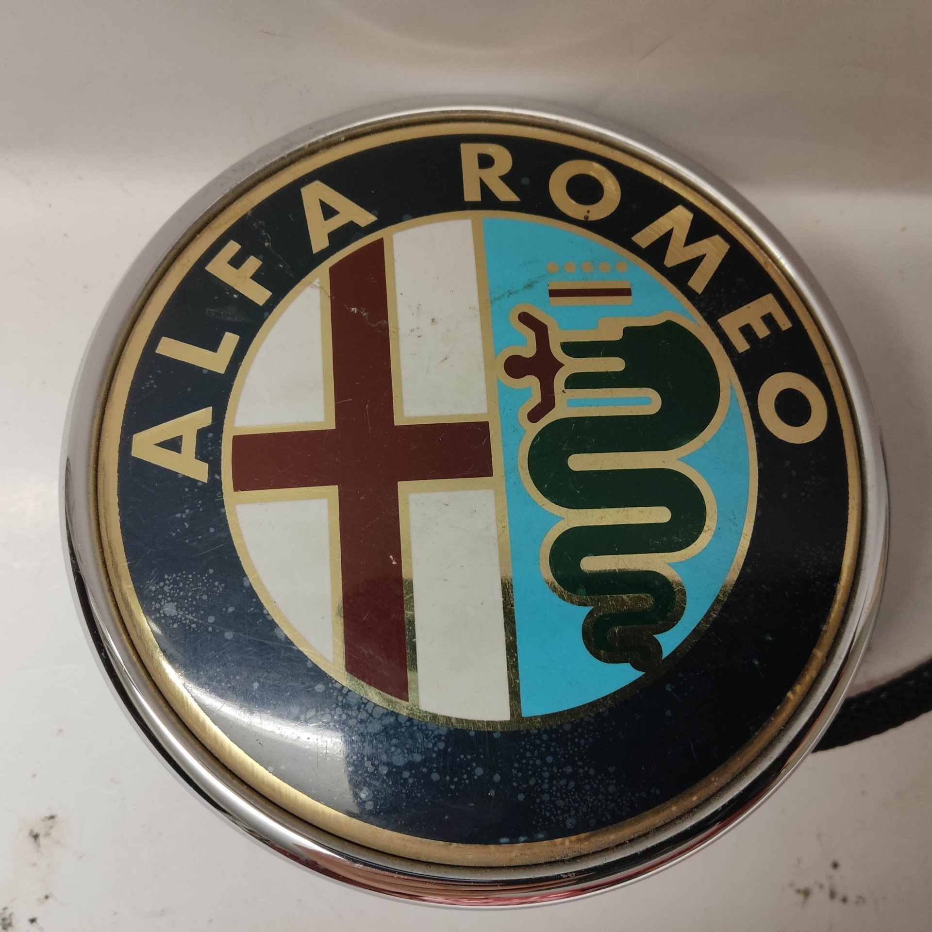 214150 Alfa Romeo Giulietta 2010-2016 hátsó nyomógombos embléma, a képen látható állapotban